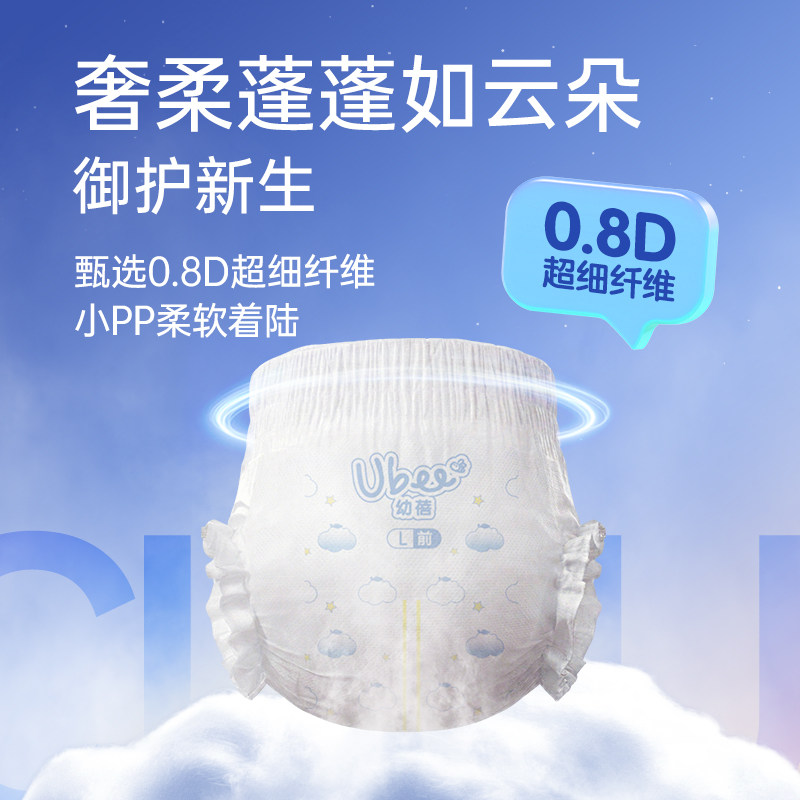 【甄选0.8D超细纤维小PP柔软着陆】幼蓓云感系列腰贴型纸尿裤,柔软亲肤,透气不闷热,宝宝舒适一整天!拍2件享优惠价,呵护宝宝娇嫩肌肤,成长更安心!