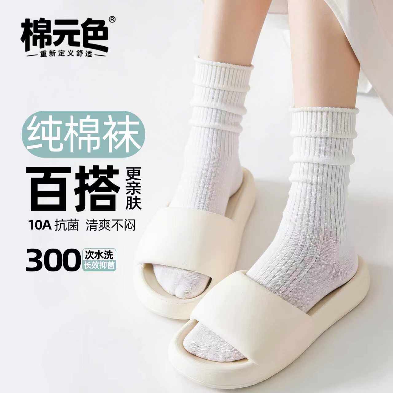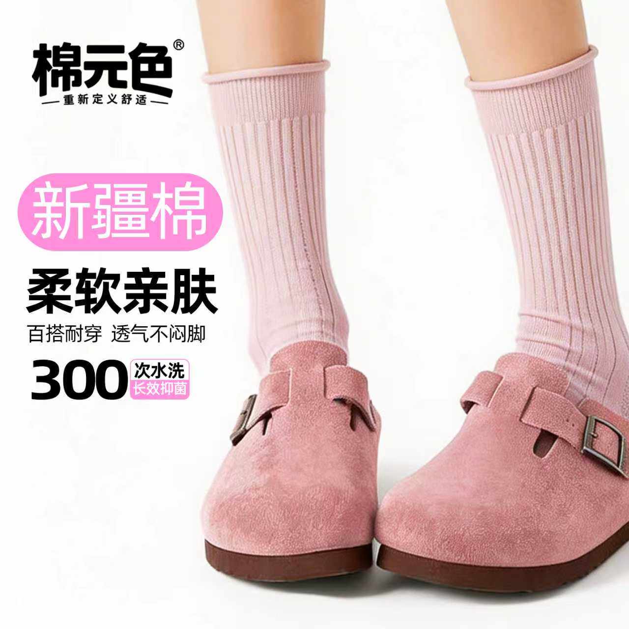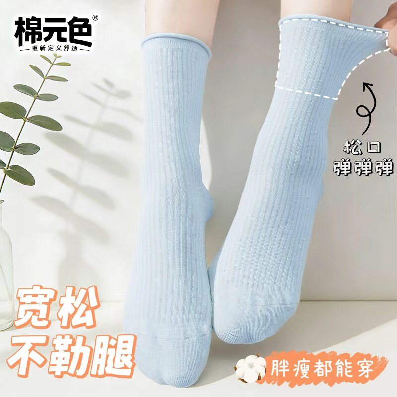 【棉元色】卷边堆堆袜子女款夏季薄款彩色透气棉袜10a无骨中筒袜