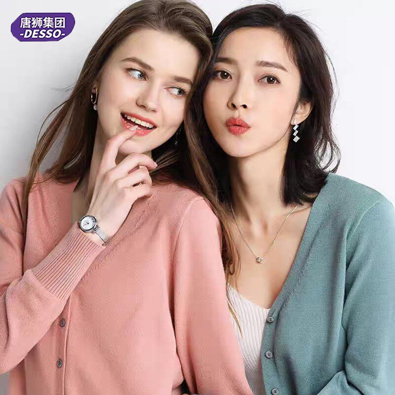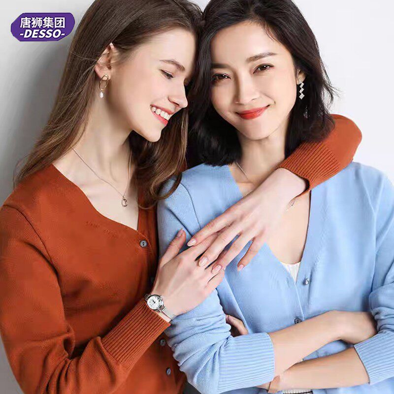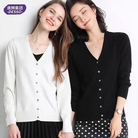 唐狮DESSO百搭针织衫外套V领针织开衫纯色简约休闲长袖外套S