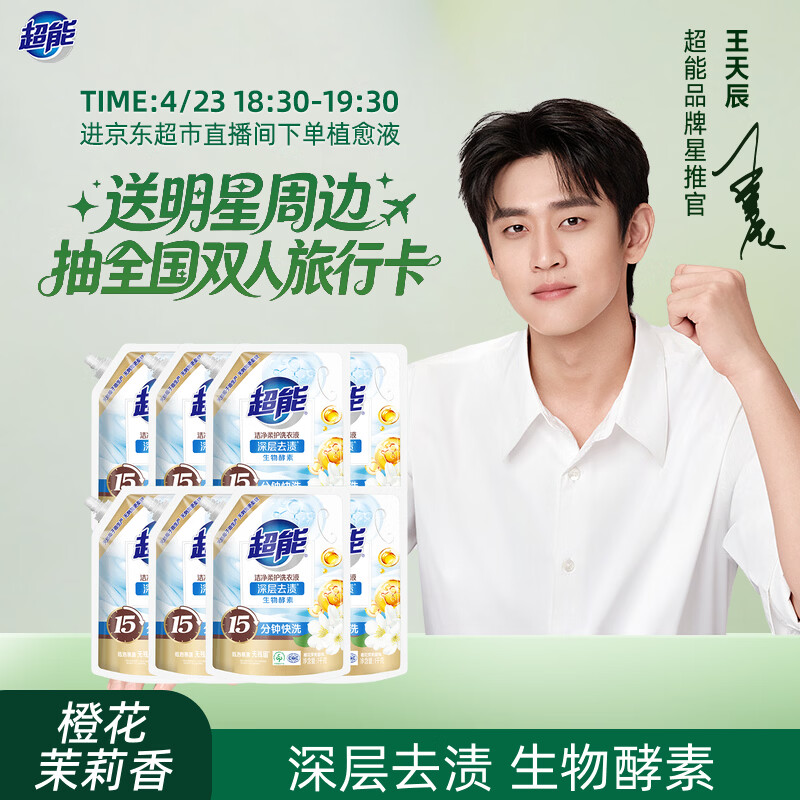超能 洁净柔护洗衣液 橙花茉莉香 16斤整箱(1kg*8袋) 15分钟快洗
