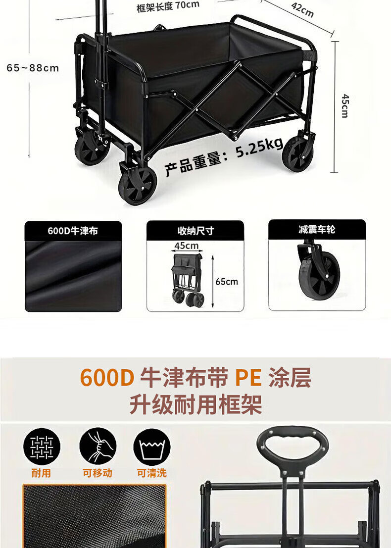 MOON LENCE露营手推车小拉车营地车拉杆拖家用拉货取快递