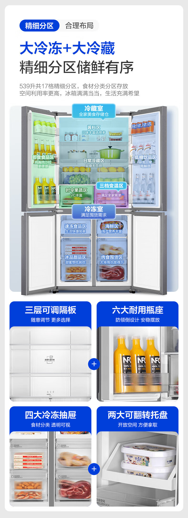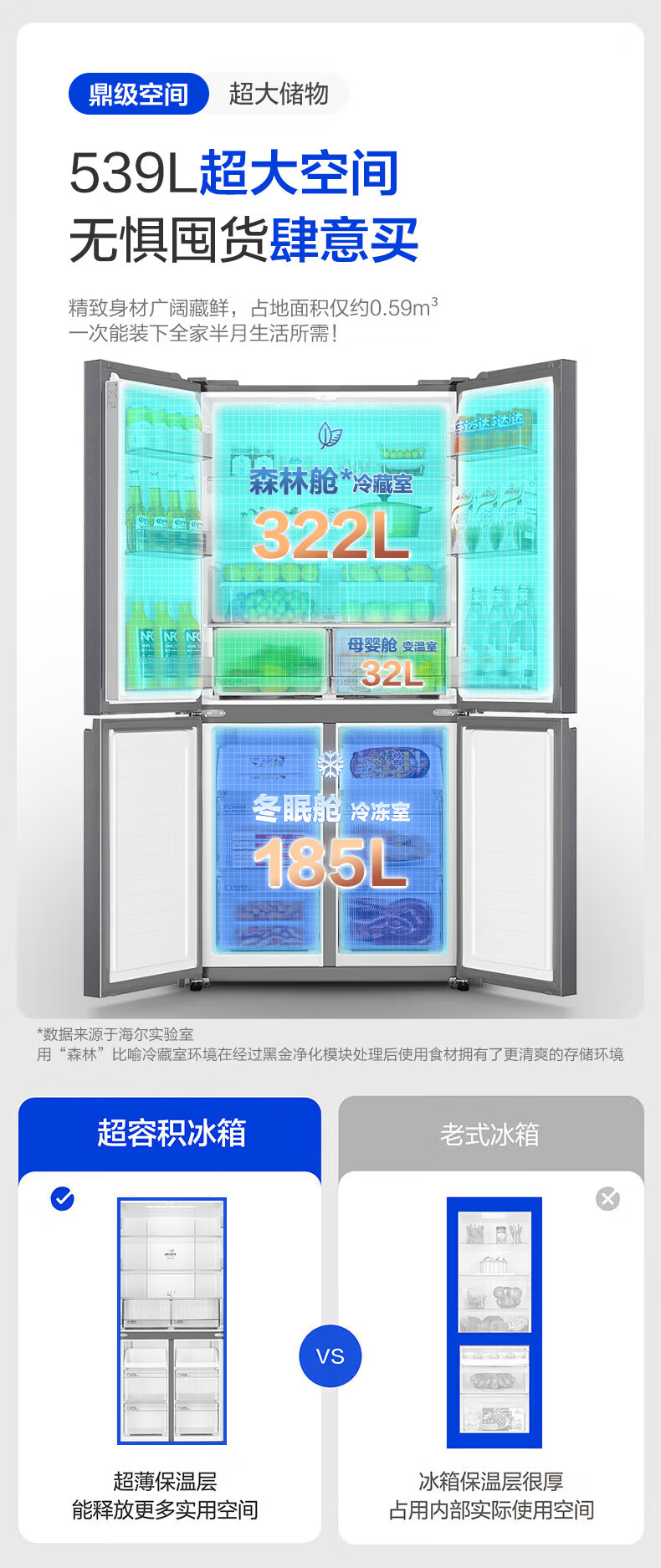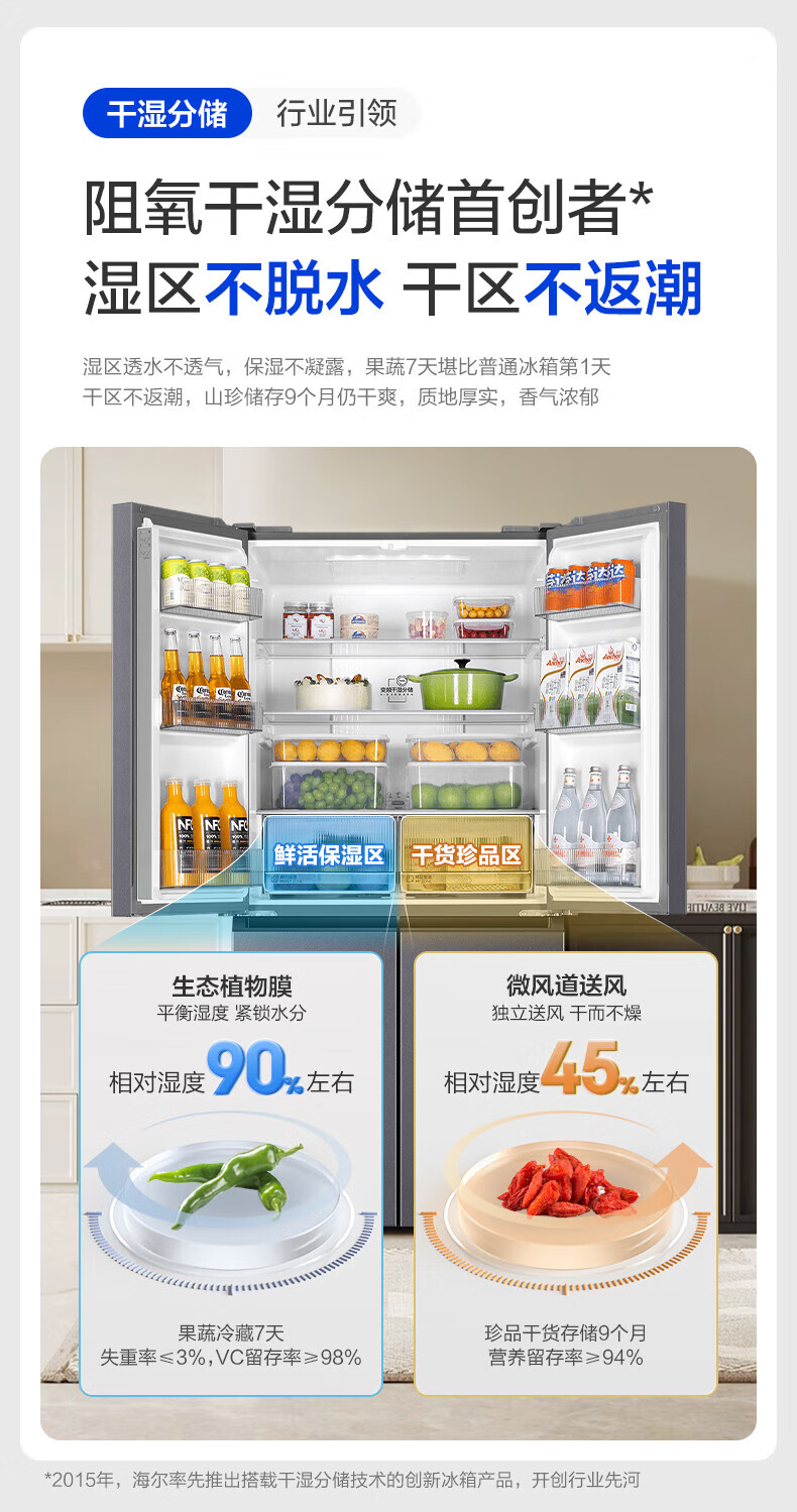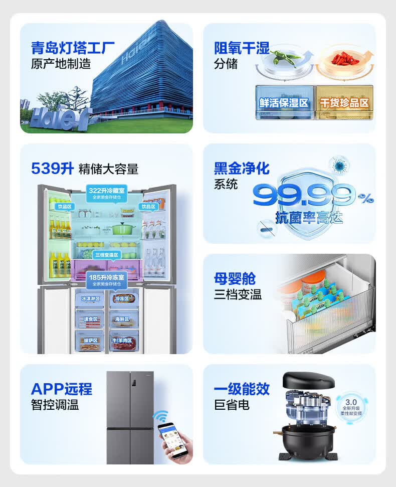 海尔(Haier)冰箱出品539升四开门十字对开门双开统帅560大容量风冷无霜新一级能效变频Leader电冰箱 家电补贴 539升+阻氧干湿分储+黑金净化+一级节能