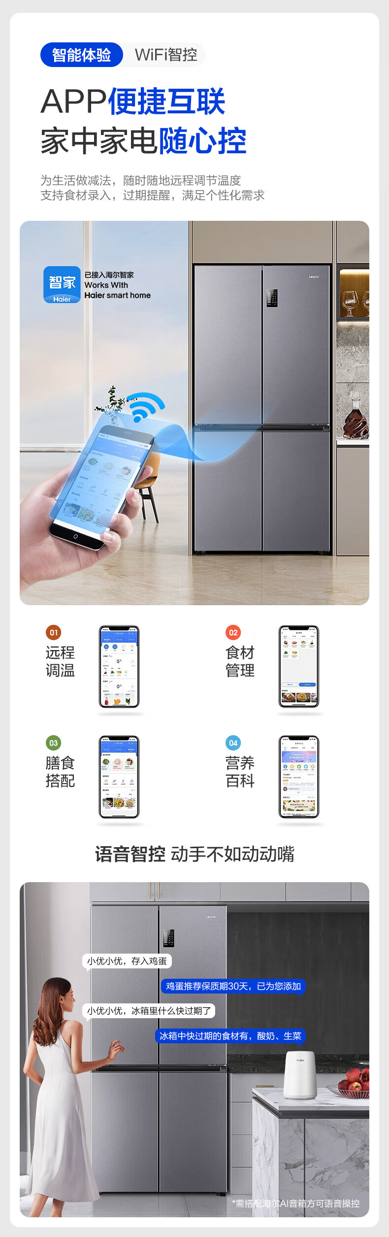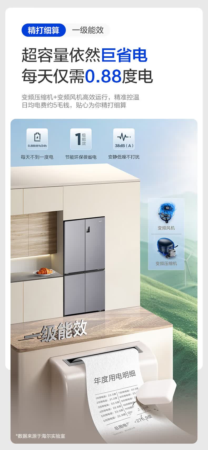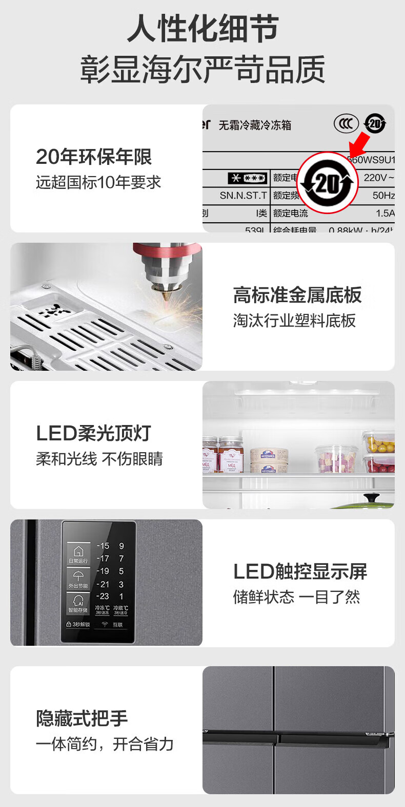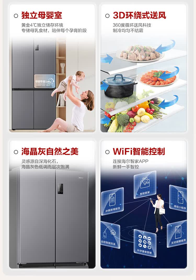 海尔(Haier)冰箱出品539升四开门十字对开门双开统帅560大容量风冷无霜新一级能效变频Leader电冰箱 家电补贴 539升+阻氧干湿分储+黑金净化+一级节能