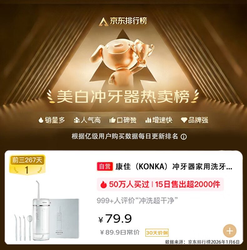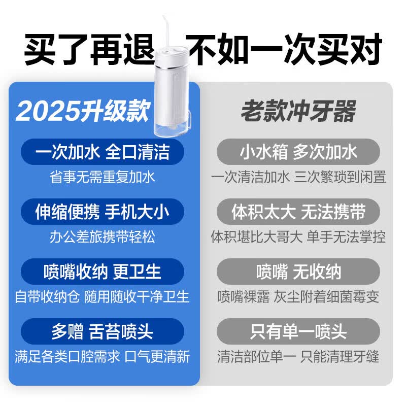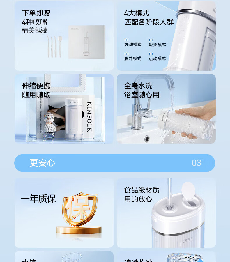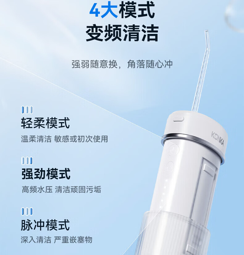 康佳冲牙器洗牙器深层洗牙正畸预防便携充电长续航家用水牙线牙结石冲洗器情侣生日礼物【4支喷头】