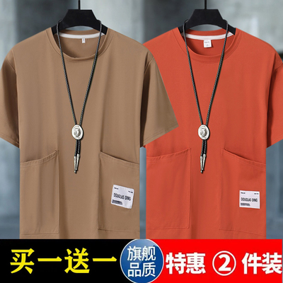 【两件装】夏季多口袋短袖t恤男士宽松百搭休闲上衣帅气半袖打底