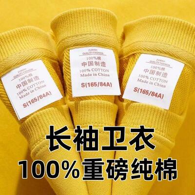 新疆棉100%纯棉圆领卫衣男女同款纯色长袖宽松上衣秋冬新款打底衫