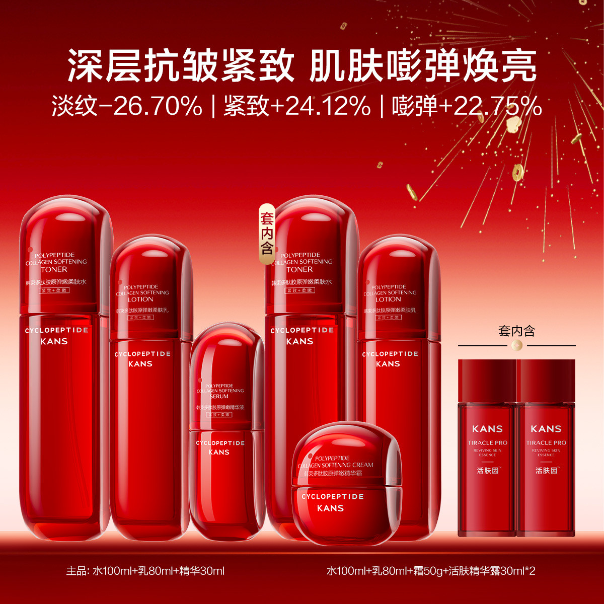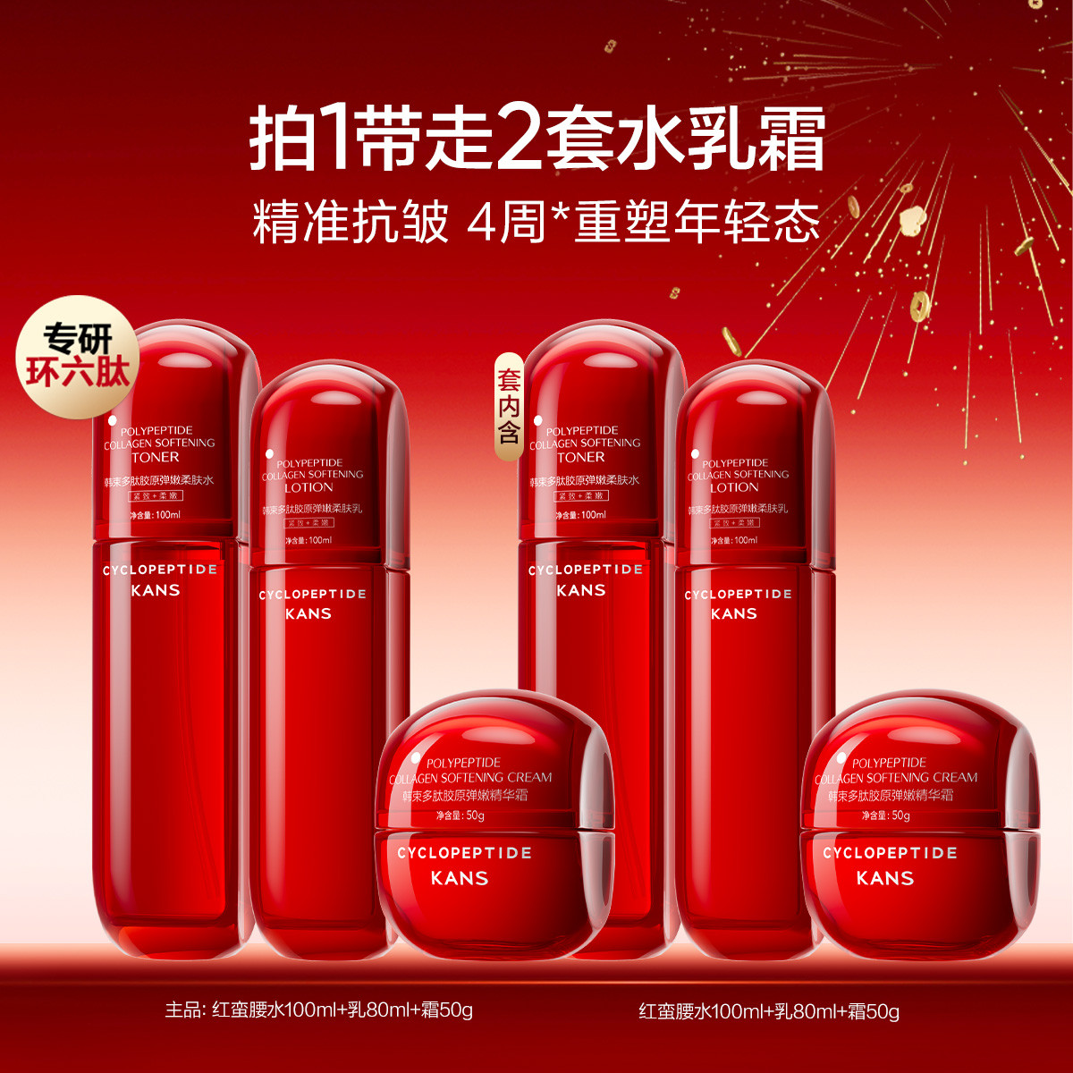 韩束 【直播有礼】红蛮腰水乳霜护肤品套装环六肽提拉紧致保湿焕亮