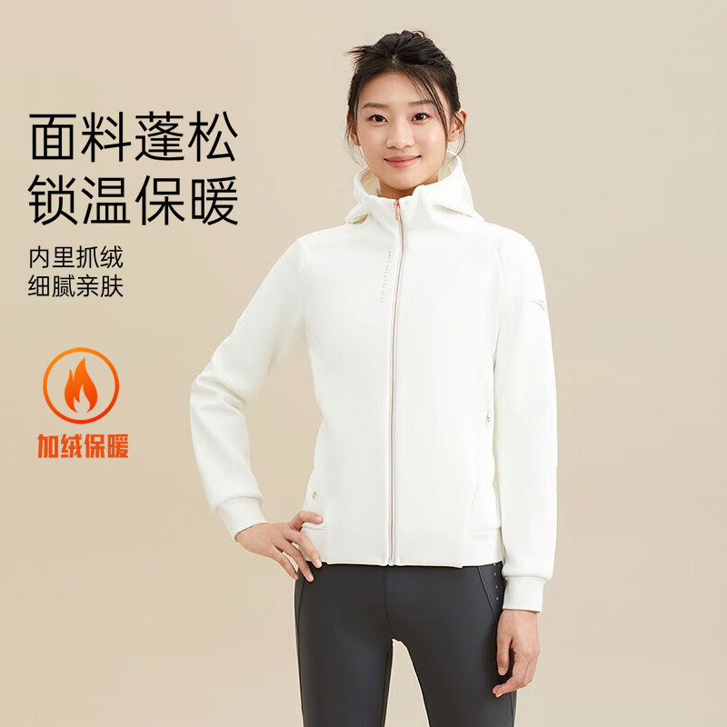 安踏 【加绒】女运动外套时尚外套秋冬显瘦保暖针织连帽开衫休闲上衣女