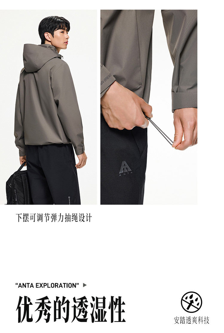安踏 水壳冲锋衣丨男防风雨透气耐磨单层冲锋衣运动户外男士外套上衣 【售价】:¥159 下单链接: