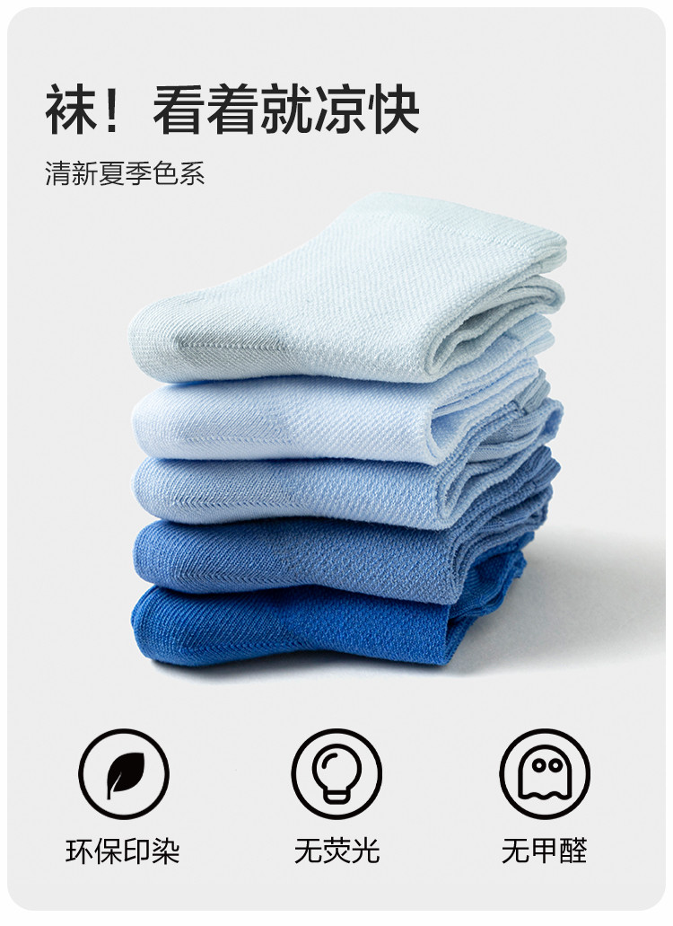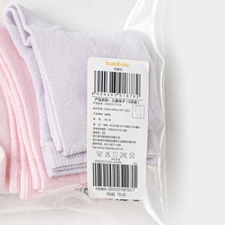 巴拉巴拉 【网眼透气】儿童袜子男童女童薄款网眼袜运动棉弹中筒袜五双装