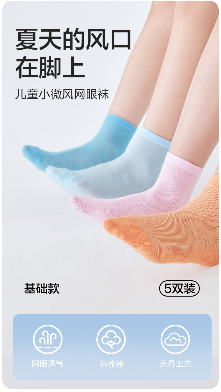 巴拉巴拉 【网眼透气】儿童袜子男童女童薄款网眼袜运动棉弹中筒袜五双装 【售价】:¥24 下单链接: