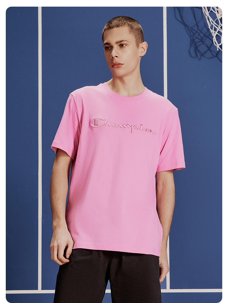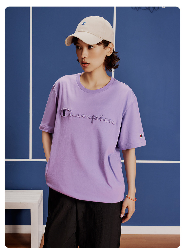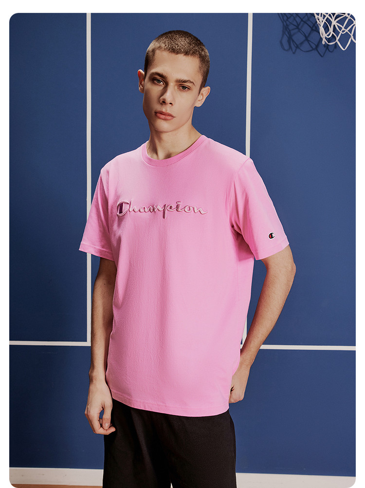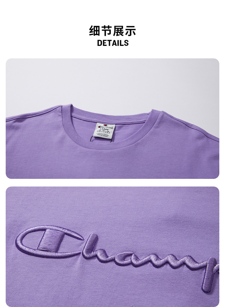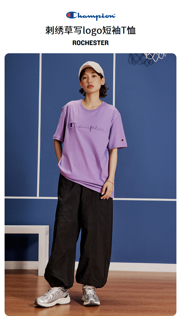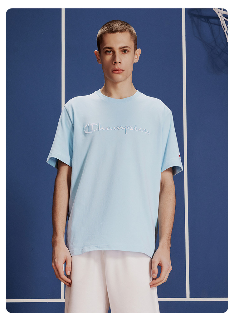 Champion 【冠军品牌】春夏男女同款圆领短袖T恤刺绣草写logo透气纯棉 【售价】:¥128 下单链接: