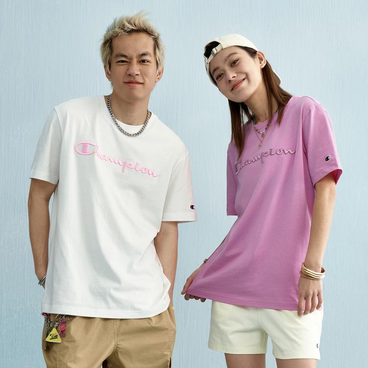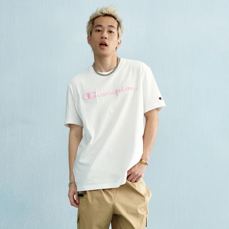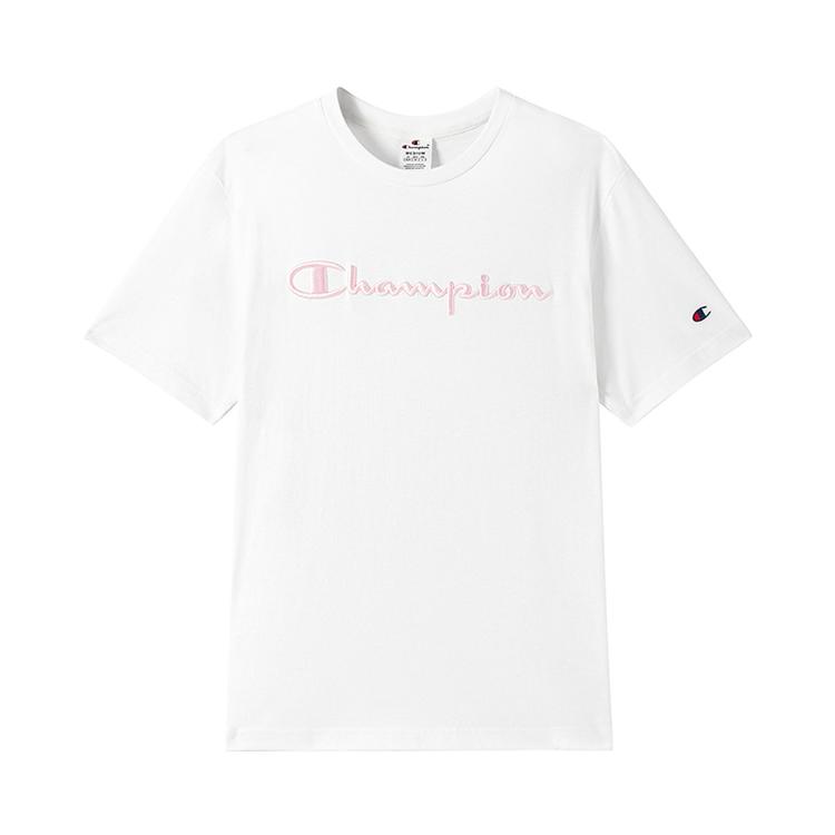 Champion 【冠军品牌】春夏男女同款圆领短袖T恤刺绣草写logo透气纯棉