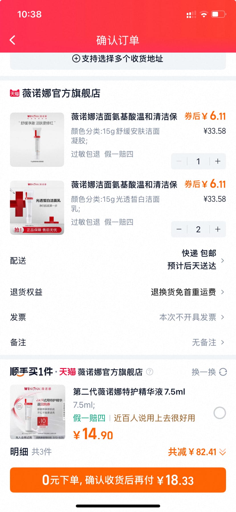 薇诺娜光透皙白洁面乳 速拍3到手18.33元